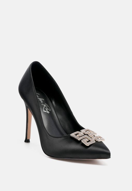 Indulge in sophistication with these high heel brooch detail pumps. These elegant pumps, adorned with a captivating brooch detail, exude opulence and charm. Perfect for formal occasions, they effortlessly elevate any ensemble with a touch of refined allure.