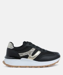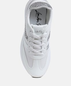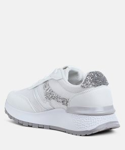 Women’s Shoes London Rag Tapers Glitter Detail Chunky Sneakers | White Silver