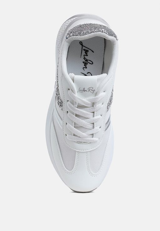 Women’s Shoes London Rag Tapers Glitter Detail Chunky Sneakers | White Silver