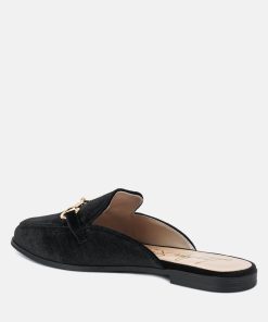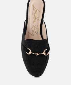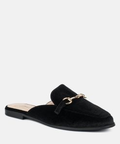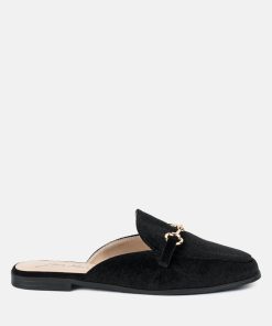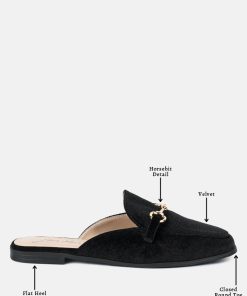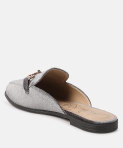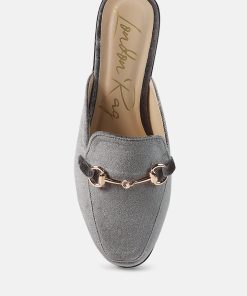 Women’s Shoes London Rag Velvet Buckled Flat Mules | Grey Velvet