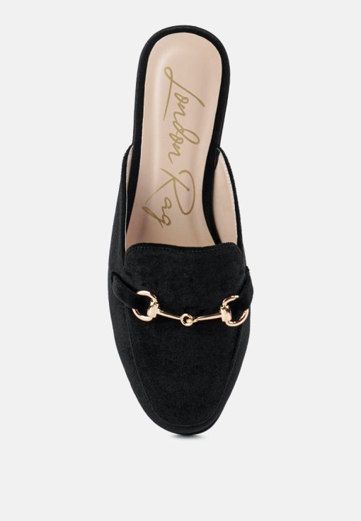 Women’s Shoes London Rag Velvet Buckled Flat Mules | Grey Velvet