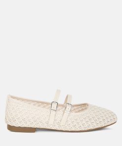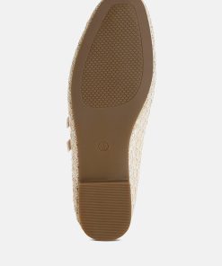 Designed for ease and style, these square-toe ballerinas feature a soft cushioned insole and adjustable pin-buckle midfoot straps for a snug fit. The woven raffia paired with premium faux leather adds an anomalous touch, making them a go-to unique pair.