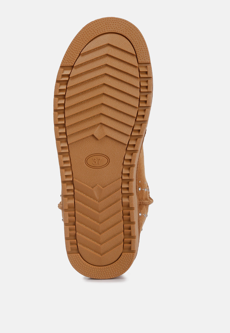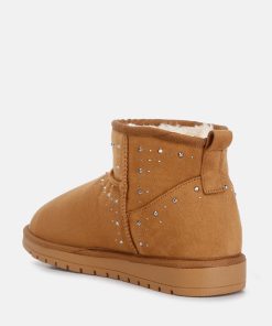 Women’s Shoes London Rag Winifred Rhinestone Embellished Fur Lined Boots | Tan