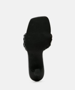 The woven strap sandal with a mid-heel is the perfect addition to your style repertoire this season. These square-toe slip-on sandals are not only trendy but also very much in vogue, instantly elevating all your casual looks. They’re a fashionable and versatile choice for those seeking to stay on-trend while ensuring comfort and style in their everyday footwear.