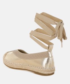 Shimmer in style with our premium metallic faux leather espadrilles, crafted for those who love some extra glam. With a woven toe cap and heel, these exquisite espadrille sandals feature a gleaming metallic finish and a detachable tie-up design. Perfect for dressing up your summer evenings or casual outings.