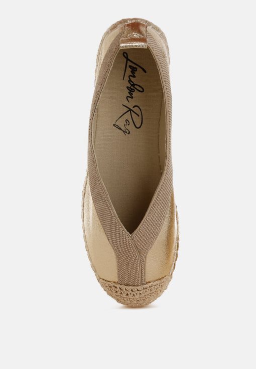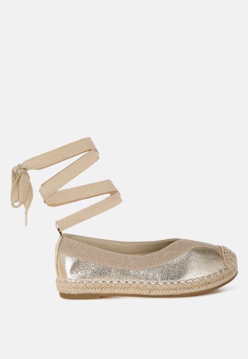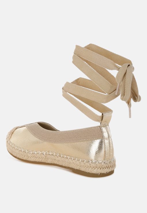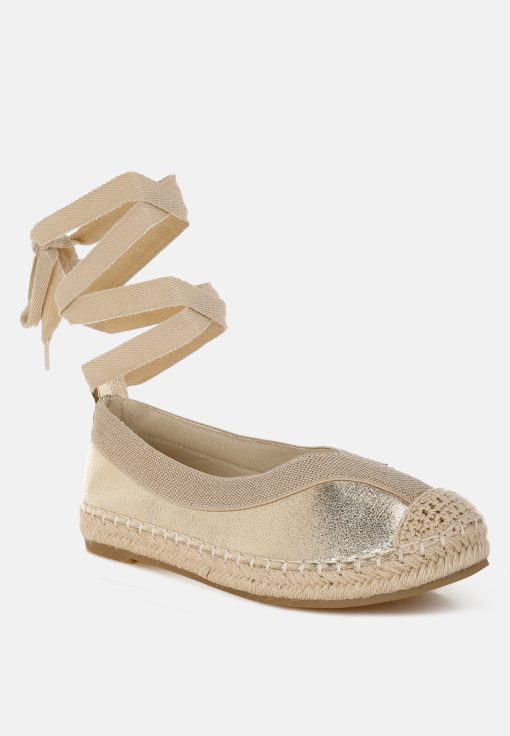 Shimmer in style with our premium metallic faux leather espadrilles, crafted for those who love some extra glam. With a woven toe cap and heel, these exquisite espadrille sandals feature a gleaming metallic finish and a detachable tie-up design. Perfect for dressing up your summer evenings or casual outings.